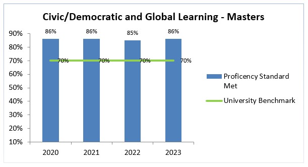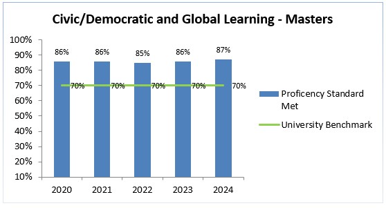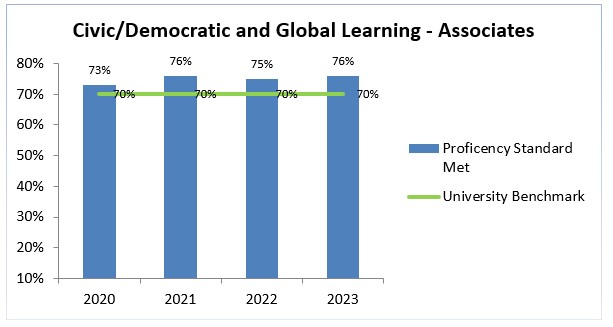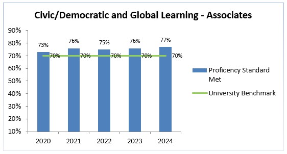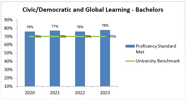 - Civic/Democratic and Global Learning recognizes higher education’s responsibilities both to democracy and the global community. Students engage in integration of their knowledge and skills by addressing and responding to civic, social, environmental, economic, equity, inclusion, and social justice challenges at local, national, and global levels.